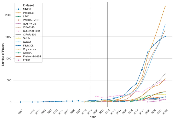 We investigate the emergence of Deep Learning as a technoscientific field, emphasizing the role of open labeled datasets. Through qualitative and quantitative analyses, we evaluate the role of datasets like CIFAR-10 in advancing computer vision and object recognition, which are central to the Deep Learning revolution. Our findings highlight CIFAR-10’s crucial role and enduring influence on the field, as well as its importance in teaching ML techniques. Results also indicate that dataset characteristics such as size, number of instances, and number of categories, were key factors. Econometric analysis confirms that CIFAR-10, a small-but-sufficiently-large open dataset, played a significant and lasting role in technological advancements and had a major function in the development of the early scientific literature as shown by citation metrics.